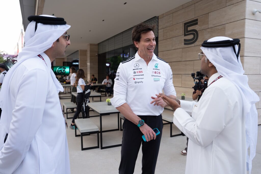 Alexander Wurz, Chairperson of the Grand Prix Drivers’ Association (GPDA) meets QMMF President Abdulrahman bin Abdullatif Al Mannai on Saturday.