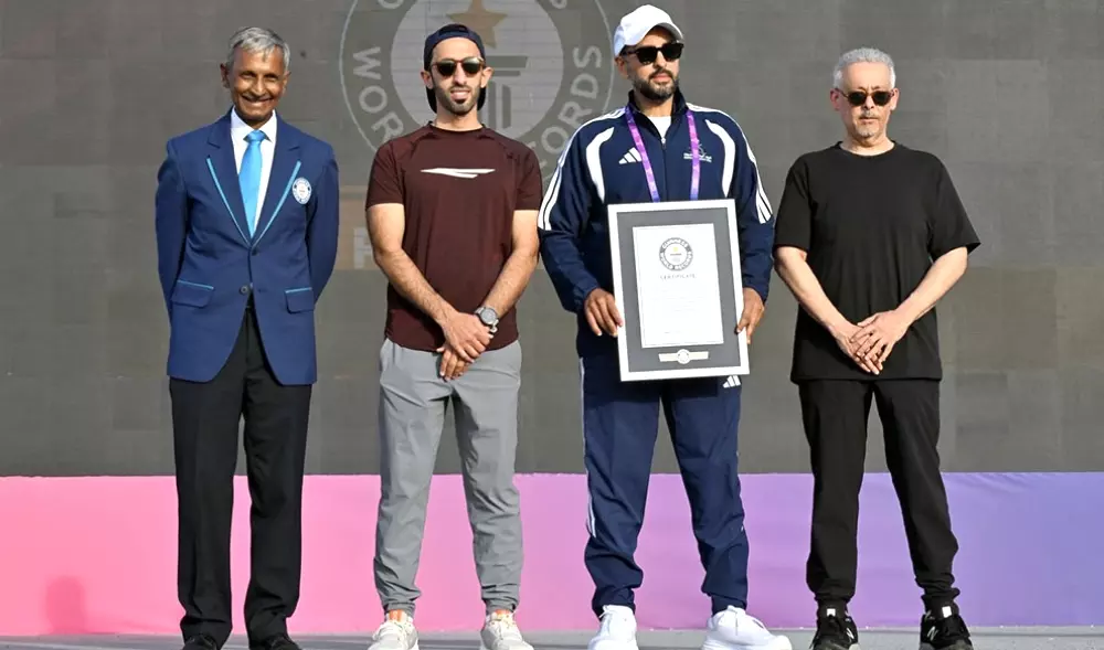 Praveen Patel, a representative of Guinness World Records, announced the achievement during a ceremony held as part of the National Sports Day activities and presented the official certificate to Colonel Ahmed bin Hamad Al Thani, Vice President of the Qatar Police Sports Federation, representing the Ministry of Interior and Lekhwiya.
