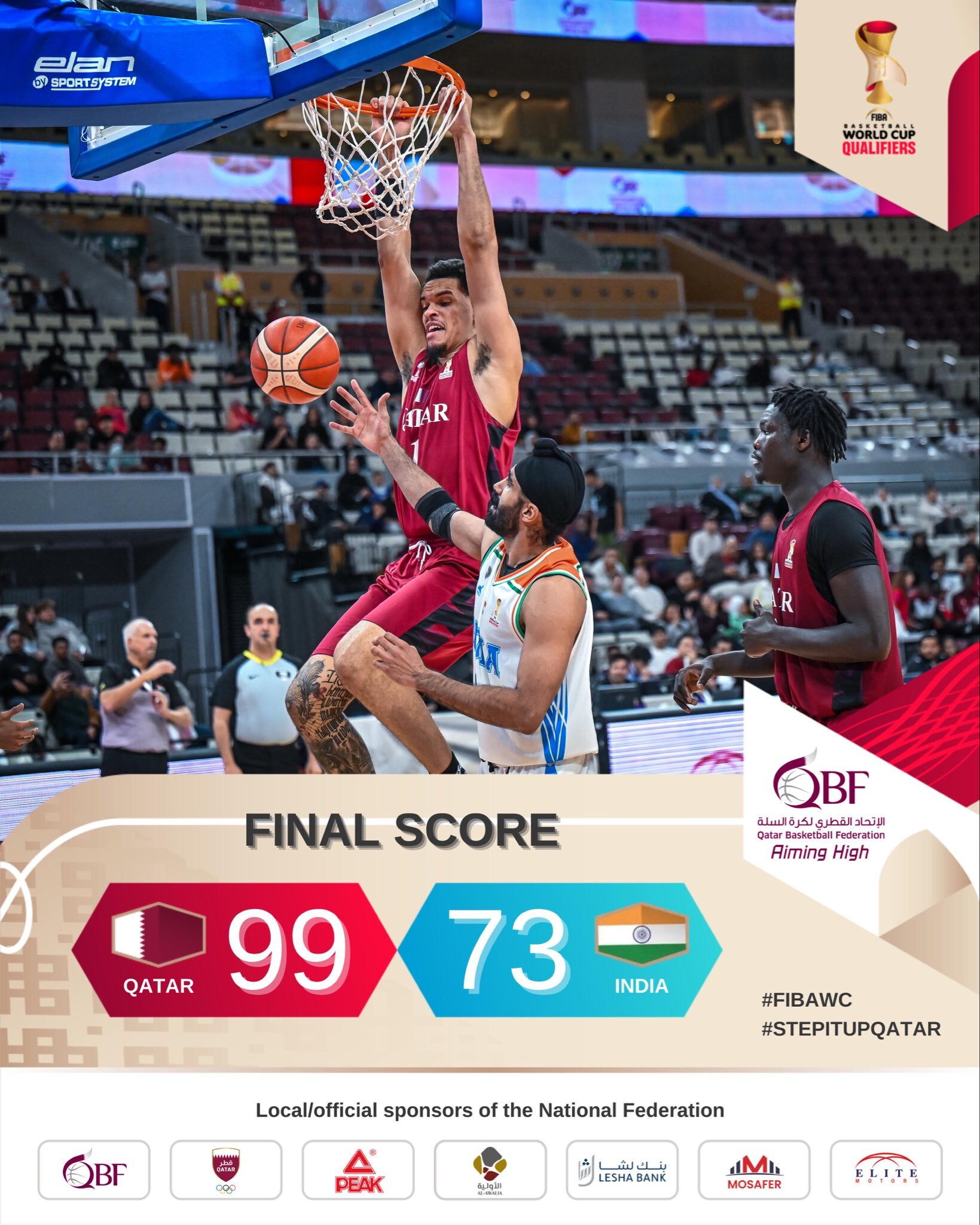 DOHA : Qatar opened their campaign in the second window of the Asian Qualifiers for the FIBA Basketball World Cup – Qatar 2027 with a commanding 99-73 victory over India at Lusail Multipurpose Hall on Friday.