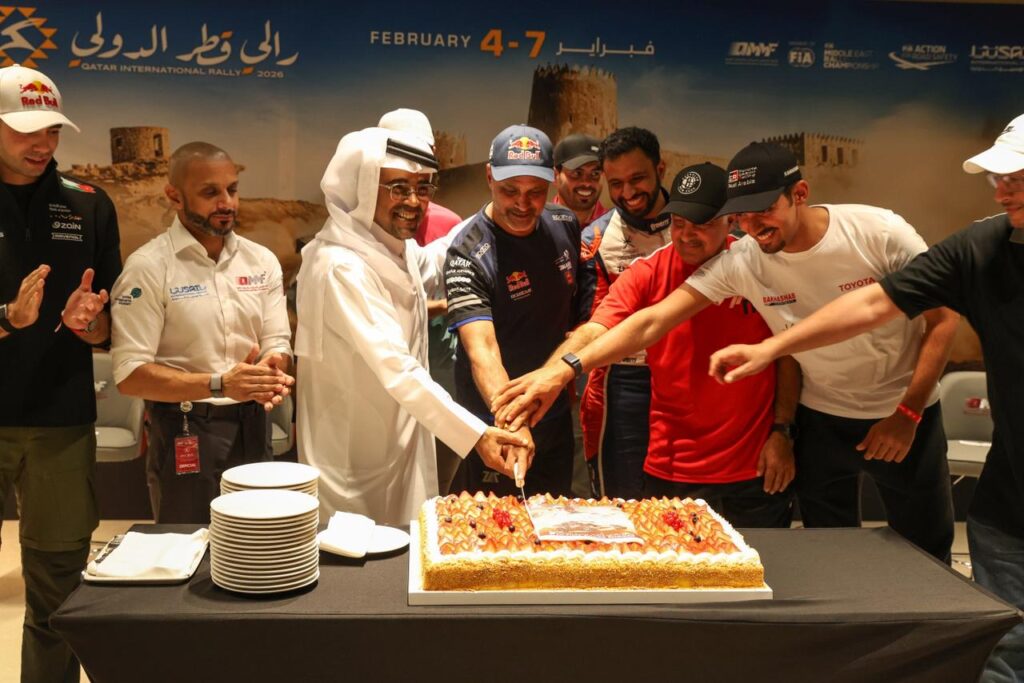 At the conclusion of the press conference, QMMF President Abdulrahman Al-Mannai presented a celebratory cake to Al-Attiyah to mark the Qatari star’s recent sixth victory in the Dakar Rally.