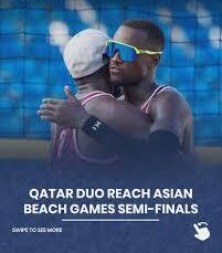 SANYA, China : Qatar’s beach volleyball pair of Cherif Younousse and Ahmed Tijan advanced to the semi-finals of the Asian Beach Games in Sanya after a 2-0 (21-10, 21-19) win over China in Monday’s quarter-final.
