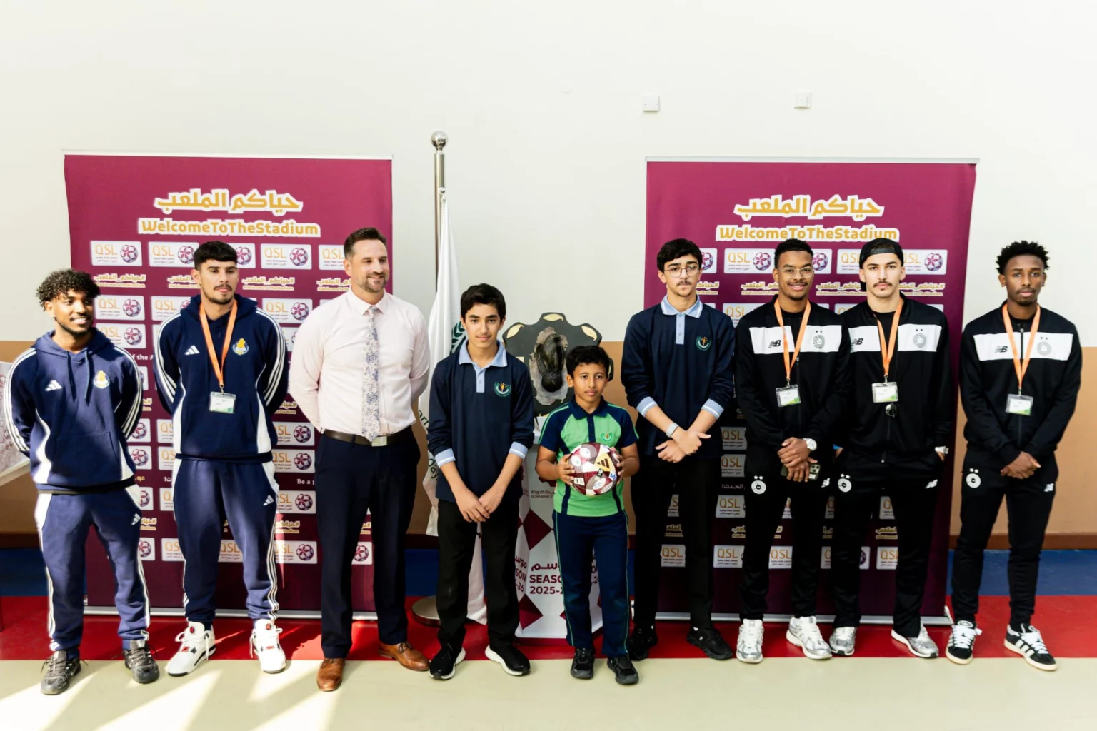 Representatives from QSL, the Gulf English School administration, several club players and students attended the event, which featured a range of entertainment programmes and activities. Upcoming Doha Bank Stars League matches were highlighted, with particular focus on the high-profile Al Gharafa–Al Sadd encounter.