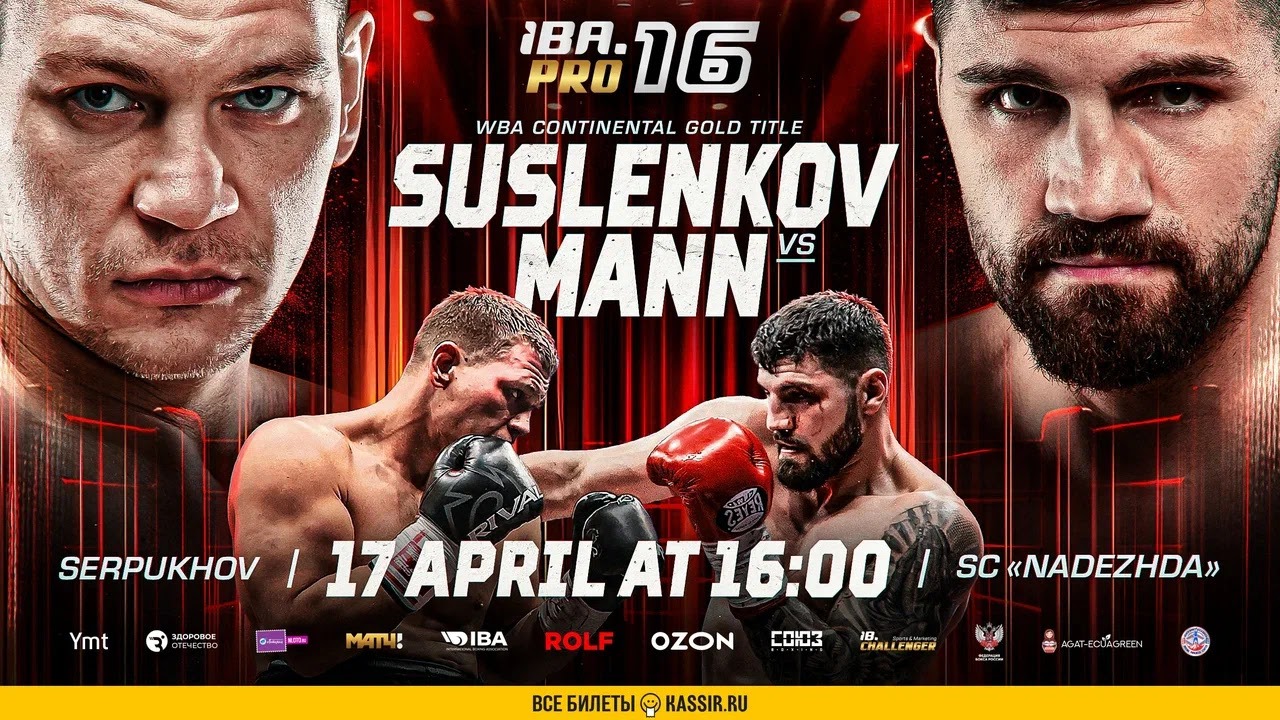 Lausanne, Switzerland: The IBA.PRO 16 tournament will bring top-tier heavyweight action to Serpukhov on April 17, headlined by undefeated Russian contender Artem Suslenkov (13-0, 8 KOs) defending his WBA Continental Heavyweight title against Germany’s Artur Mann (23-5, 14 KOs).